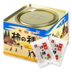 国産もち米使用。伝統の味とデザインの元祖柿の種。和紙風小袋詰め化粧缶入りです。
